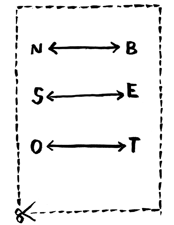 Now, the fun part. Take a piece of paper and draw the three lines on it. Or indeed print and cut out this one: